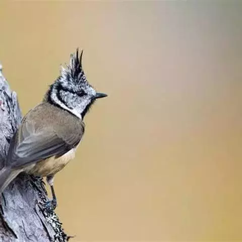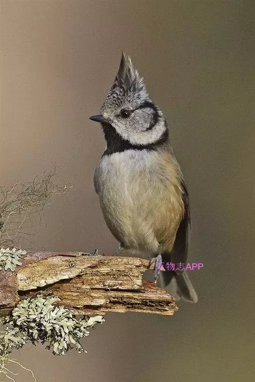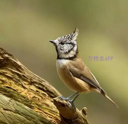 褐冠山雀:为小型鸣禽。体长100-120毫米。头顶和长的羽冠褐灰色或灰色,其余下体橄榄褐色或暗灰色,…