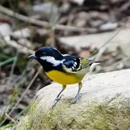 黄腹山雀是雀形目山雀科山雀属鸟类。虹膜褐色或暗褐色;嘴蓝黑色或灰蓝黑色;头、喉胸斑黑色,…