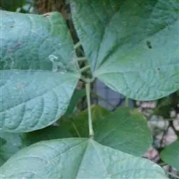 海州常山 灌木或小乔木,高1.5-10米;幼枝、叶柄、花序轴等多少被黄褐色柔毛或近于无毛,老枝灰白色,具皮孔,髓白色,有淡黄色薄片状横隔。叶片纸质,卵形、卵状椭圆形或三角状卵形,长5-16厘米,宽2-13厘米,顶端渐尖,基部宽楔形至截形,偶有心形,表面深绿色,背面淡绿色,两面幼时被白色短柔毛,老时表面光滑无毛,背面仍被短柔毛或无毛,或沿脉毛较密,侧脉3-5对,全缘或有时边缘具波状齿;叶柄长2-8厘米。