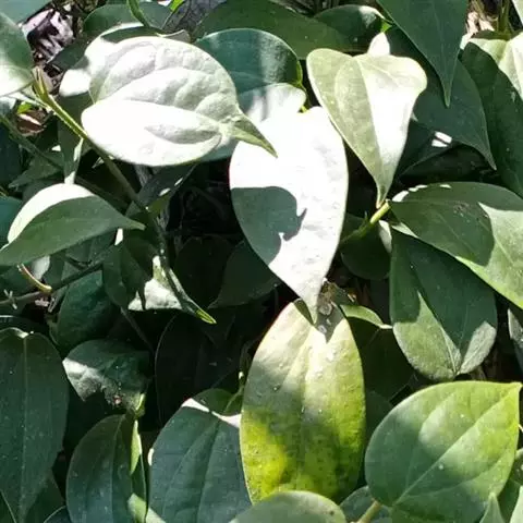 假蒟是胡椒科胡椒属多年生草本植物。小枝近直立,无毛或幼时被极细的粉状短柔毛;叶近膜质,有细腺点,…
