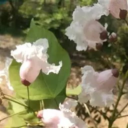 粉花凌霄 K.Schum.)是紫葳科魔盒凌霄属的落叶藤本植物。奇数羽状复叶对生,小叶全缘,…