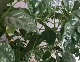 危害症状:白粉病侵染美国凌霄的枝叶和嫩梢,发病初期叶片着生黄色小斑点,随后逐渐增大并相互连接,病斑上着生一层白色粉状物,后叶片发生皱褶,凸凹不平,嫩梢扭曲,发病严重时影响生长,花小而色淡。