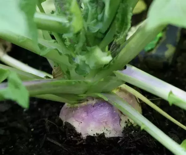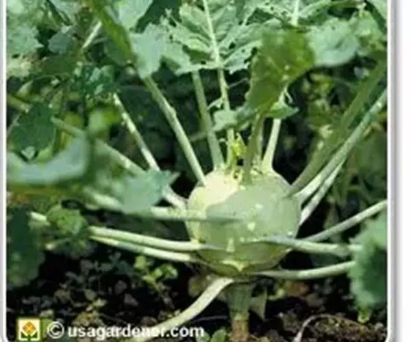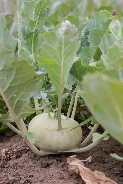二年生草本,高30-60厘米,全体无毛,带粉霜。茎短,在离地面2-4厘米处处膨大成1个实心长圆球体或扁球体,绿色,其上生叶。