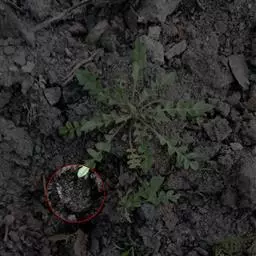 培育壮苗:在幼苗出齐后培土1次,厚度为0.5厘米,防止土面龟裂;子叶展开后间苗,苗距6.7厘米,间苗后再培土1次,厚度为0.5厘米,以利幼苗扎根,降低苗床温度,防止猝倒病的发生。定植前5天可揭去全部覆盖物,进行大炼苗。待苗高10-12厘米后可以定植。
