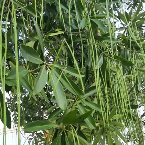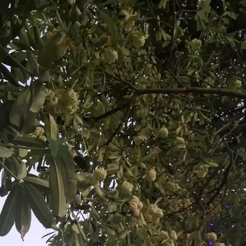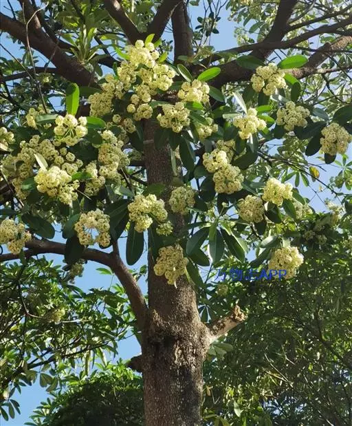 糖胶树(学名:Alstonia scholaris (L.)R. Br.),又称“象皮树”“灯架树”“黑板树”等,是夹竹桃科,鸡骨常山属乔木。高达20m,枝轮生,具乳汁,无毛;叶轮生,倒卵状长圆形、倒披针形或匙形,稀椭圆形或长圆形;花白色,多朵组成稠密的聚伞花序,顶生,被柔毛;蓇葖细长,线形,种子长圆形,花期6-11月,果期10月-翌年4月。