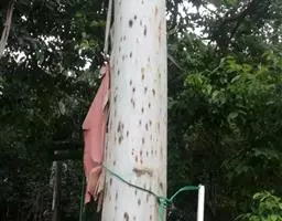 2、播种法:4月采成熟果实,将种子与细砂匀和,而后撒播之,稍覆细土保持湿度,约35天左右发芽,适时间苗,苗高约15厘米即带土上盆,选用大盆,以利生长。盆栽用土以砂壤土或轻壤土,选择土壤的目的是便于脱盆,并保持土团完整,使根系不受损伤。苗上盆后,置于阴凉处,待苗生长正常,可置于半日照或全日照处。苗与苗之间要保持适当距离,并随着苗的长大,适时地调整苗距,以保持植株球形长势。盆要用红砖垫起,防止苗根穿过排水孔而扎入土层,从而失去盆栽的作用。盆栽期间,每月施肥一次。翌年4月,苗高60厘米左右,可脱盆栽到苗床培育,即地栽。地栽苗床用土,亦应以砂壤土或轻壤土为佳,目的也是为了起苗时保持土球完整。植株的株行距,一般可在120~150厘米之间,经过约1年地栽,苗高120厘米以上,便可出圃移植。经过这样培植的苗木,根系大部分集中在基部50厘米内,这样,移植时能保存较为完整根系,这是移植成活的关健。