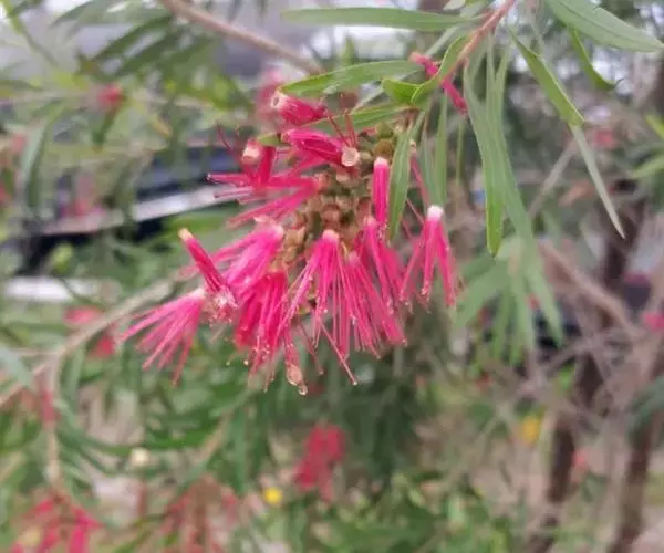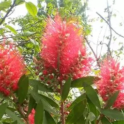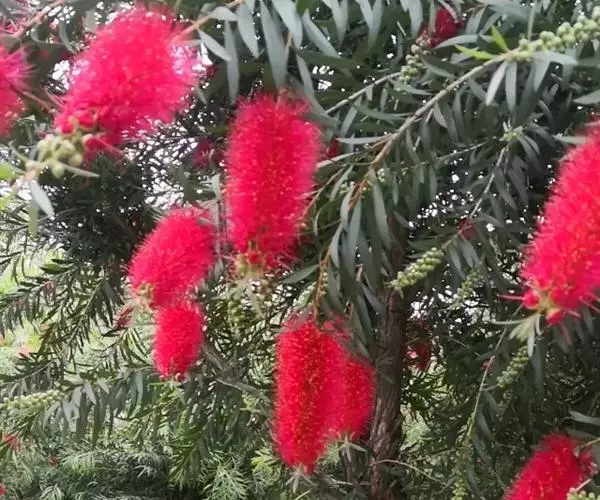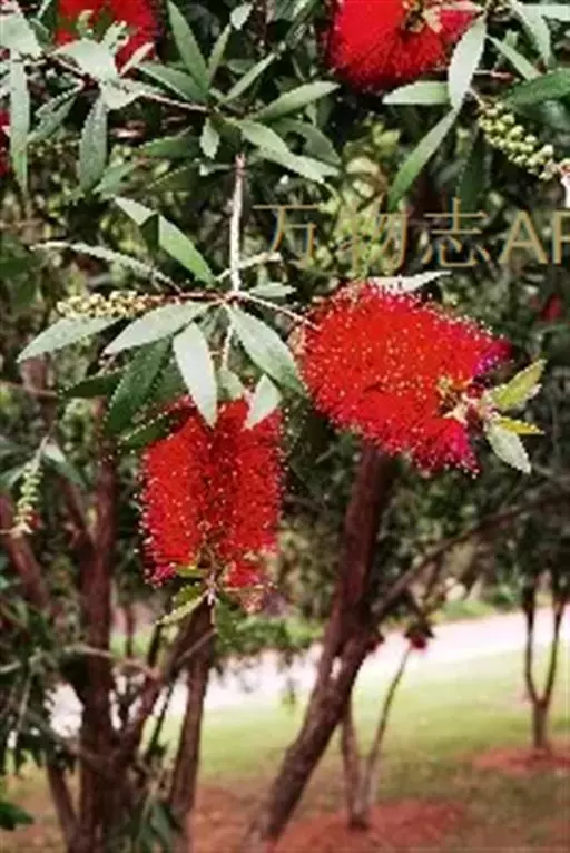 红千层(Callistemon rigidus R. Br.)又称红毛丹树,瓶刷子树、红瓶刷、金宝树等,为桃金娘科的常绿灌木或小乔木,红千层属阳性树种,喜温暖、湿润气候,能耐烈日酷暑,原产澳大利亚。叶披针形,似罗汉松叶终年不凋,四季常青。花稠密,聚生于顶端,花期6-8月,花形极为奇特呈穗状,且色泽艳丽,可作插花,同时也是庭院观花、行道景观、小区绿化的首选树种,亦可作防风林、绿化林,或盆栽修剪成型后制成高档盆景。中国引进已有百年历史,中国台湾、广东、广西、福建、浙江等地均有栽培。红干层适合庭院美化,为高级庭院美化观花树、行道树、园林树、风景树,还可作防风林、切花或大型盆栽,并可修剪整枝成为高贵盆景。