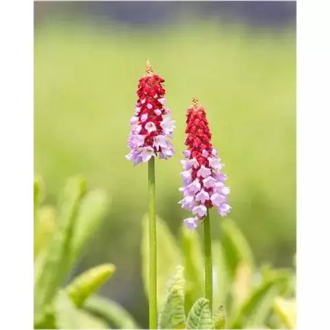 多年生草本。根状茎粗短,具带肉质的长根。叶丛基部有覆瓦状包叠的鳞片,呈鳞茎状,高2.5-5厘米,直径可达4厘米;鳞片卵形至卵状矩圆形,鲜时带肉质,背面褐色,腹面常被黄粉。叶矩圆形至倒卵状矩圆形,开花时尚未充分发育,连柄长3-10(15)厘米,通常仅稍长于基部鳞片,后渐增大,至果期长可达35厘米,宽至12厘米,先端圆形或稍锐尖,基部渐狭窄,边缘不规则浅裂,裂片具不整齐的小牙齿;叶柄初期甚短,果期长达叶片的1/2或与叶片近等长。花葶初期甚短,盛花期通常与叶丛近等长,至果期长可达30厘米,近顶端被黄粉;伞形花序3至多花;苞片卵状三角形至卵状披针形,长2.5-6毫米;花梗长6-25毫米,被淡黄色粉或仅具粉质小腺体;花萼钟状,长4-6毫米,外面通常被黄粉,果时稍增大,呈杯状,分裂约达全长的l/3,裂片卵形至近四方形,先端钝,具小齿或有时全缘;花冠蓝色至红色,稀白色,冠檐直径1.5-2.5厘米,裂片倒卵形或近圆形,顶端通常具小齿,稀近全缘;长花柱花:冠筒长9-10毫米,雄蕊着生于冠筒中部,花柱与冠筒等长或微露出筒口;短花柱花:冠筒长11-13毫米,雄蕊着生于冠筒上部,花药微露出筒口,花柱微高出花萼。蒴果近球形,直径约4.5毫米。花期3-5月,果期6-7月。