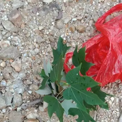 叶片三角形或卵圆状三角形,长3-16厘米,宽2.3-16厘米,先端渐尖或尾状渐尖,基部心形或戟形,间有近截形,基片卵圆形,先端锐尖或钝,边缘具重圆齿或牙齿,上面绿色,被长柔毛或短硬毛,下面淡绿色,沿脉被长柔毛,余部散布黄褐色腺点;叶柄长1-9厘米,被疏或密的长柔毛。