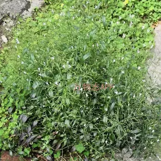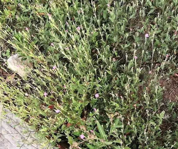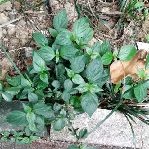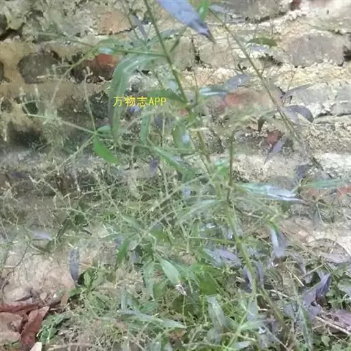 一年生草本。茎高50~80厘米,4棱,下部多分枝,节膨大。叶卵状矩圆形至矩圆状披针形,长4~8厘米,宽1~2.5厘米,顶端略钝。花序轴上叶较小,总状花序顶生和腋生,集成大型圆锥花序;苞片和小苞片微小,长约1毫米;花萼裂片三角状披针形,长约3毫米,有腺毛和微毛;花冠白色而小,下唇带紫色班纹,长约12毫米,外有腺毛和短柔毛,2唇形,上唇微2裂,下唇3深裂,花冠筒与唇瓣等长;雄蕊2,花药2室,一室基部和花丝一侧有柔毛。蒴果扁,中有一沟,长约10毫米,疏生腺毛;种子12粒,四方形,有皱纹。