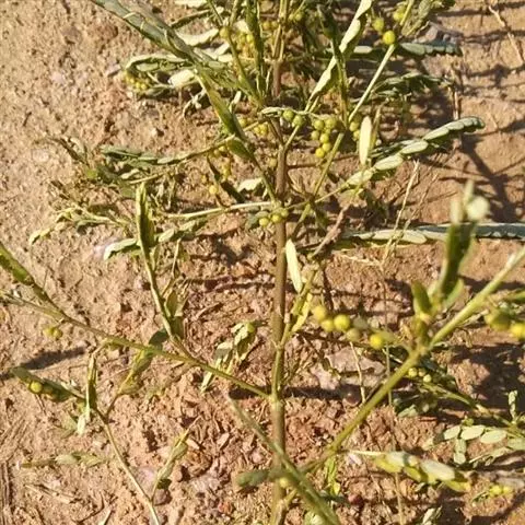 一年生草本植物,高数寸至尺许。茎带紫红色,有纵棱。叶互生,作复瓦状排列,形成二行,很似羽状复叶,叶片矩圆形,长二、三分,全绿,先端尖或钝,基部圆形,几无叶柄。夏秋沿茎叶下面开白色小花,无花柄。花后结扁圆形小果,形如小珠,排列于假复叶下面。