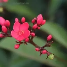 变叶珊瑚花,是大戟科麻风树属常绿灌木。变叶珊瑚花单叶互生,倒阔披针形,叶面为浓绿色,叶背为紫绿色,…