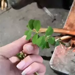 奇数羽状复叶,具7-13片小叶,长5-15厘米;叶柄较叶轴短;托叶离生,卵形,长3-6毫米,先端尖,基部互相多少合生,具缘毛;小叶倒卵形或椭圆形,长10-15毫米,宽4-10毫米,先端钝圆或微凹,基部宽楔形,上面近无毛,下面散生白色柔毛,具短柄。