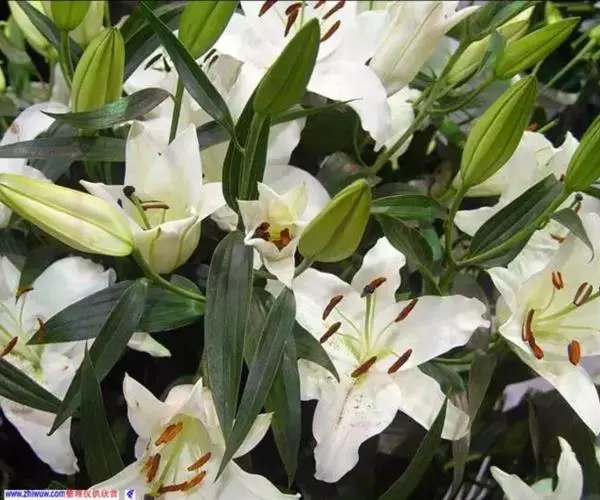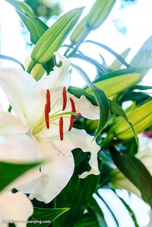 青岛百合是百合科百合属的多年生草本植物;鳞茎近球形;鳞片披针形,白色,无节;叶轮生,…