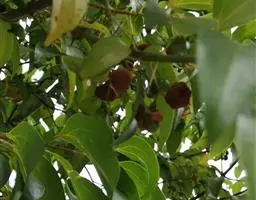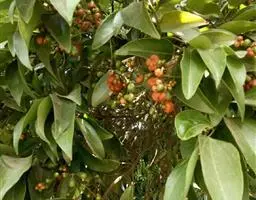 整形修剪:修剪要求主干高25-35厘米,主枝3-5个,副主枝3个以上,均匀分布。树冠呈自然椭圆形,株型整齐、丰满。每年修剪1-2次,春梢萌芽前10-15天,对无分枝的单干苗,在距地面约40厘米处剪顶,选留健壮、分枝角度及位置适合的3-5个春梢作为主枝,夏梢抽出后,每条春梢留2-3条夏梢作为副主枝,其余剪除。修剪以轻剪为主,同时剪除弱枝、过密枝和病虫枝。