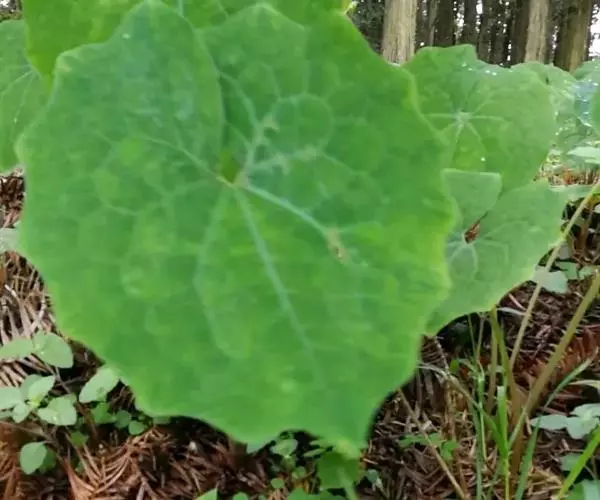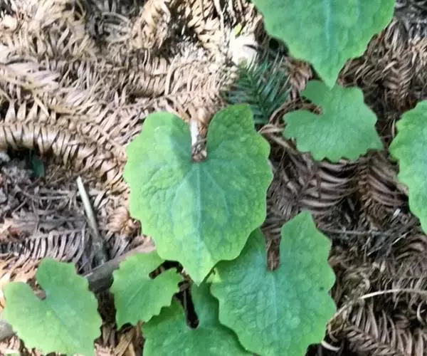 多年生无毛草本,具红黄色液汁。根橙黄色,根茎匍匐。叶全部基生,叶片心形或心状肾形,稀心状箭形,长5-26厘米,宽5-20厘米,先端渐尖或急尖,基部耳垂,边缘呈波状,表面绿色,背面灰绿色,掌状脉5-7条,网脉细,明显;叶柄条形或狭条形,长10-30厘米,带蓝灰色,基部略扩大成狭鞘。花葶灰绿色略带紫红色,高20-40厘米,有3-5花,排列成聚伞状伞房花序;苞片和小苞片卵状披针形,长2-10毫米,先端渐尖,边缘薄膜质;花梗直立,长0.5-5厘米。花芽卵珠形,长约1厘米,先端渐尖;萼片长0.5-1厘米,无毛;花瓣倒卵形,长1-2.5厘米,宽0.7-1.8厘米,白色;花丝长5-7毫米,花药黄色, 长约3毫米;子房卵形或狭卵形,长0.5-1厘米,无毛,花柱长3-5毫米,柱头2裂,下延于花柱上。蒴果狭椭圆形,长约2厘米,宽约0.5厘米,花柱延长达1厘米(果未成熟)。花期3-6月,果期6-10月。