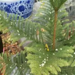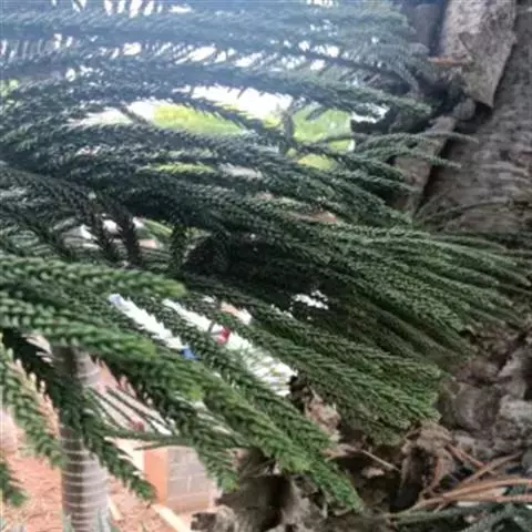异叶南洋杉(学名:Araucaria heterophylla (Salisb.) Franco)是南洋杉科南洋杉属植物,乔木,在原产地高可达50米以上,树干通直,树皮暗灰色,树冠塔形,叶二型:钻形,光绿色,叶片弯曲,通常两侧扁,上面具多数气孔线,有白粉,树及花果枝上的叶排列较密,微开展,基部宽,先端钝圆,雄球花单生枝顶,圆柱形。球果近圆球形或椭圆状球形,苞鳞厚,种子椭圆形,稍扁,两侧具结合生长的宽翅。