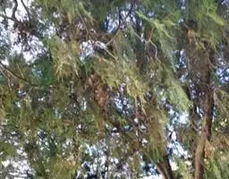乔木,在原产地高达50米以上,胸径达1.5米;树干通直,树皮暗灰色,裂成薄片状脱落;树冠塔形,大枝平伸,长达15米以上;小枝平展或下垂,侧枝常成羽状排列,下垂。叶二型