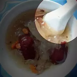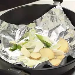 9.加入高汤或是清水,砂糖1茶匙及香葱段。