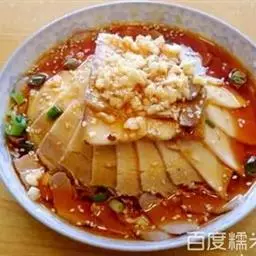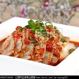 5.用植物油烧开,淋在肉片上,即可使麻、辣、浓香四溢。