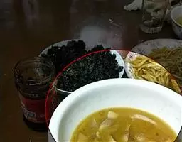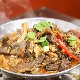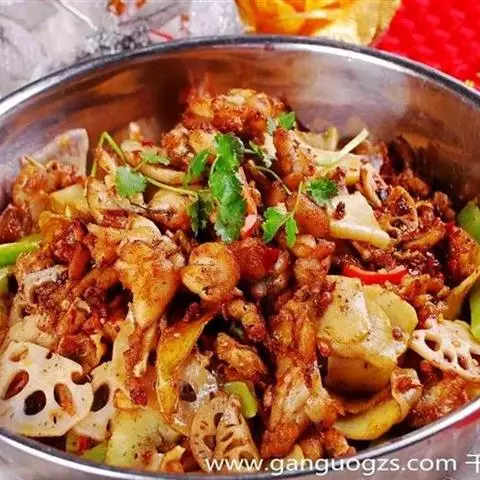 原料:猪肉,时 令鲜蔬 譬如:豆芽、白菜、莴笋、土豆、菌菇类的木耳、平菇、金针菇、豆瓣,干辣椒面,花椒,姜,蛋清