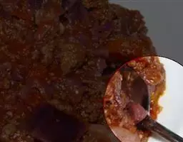 14.再铺上煮好的肉片。