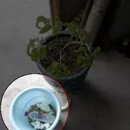 4.将锅洗干 净,烧热油,碗里放上蒜末和辣椒粉、花椒,油热后,浇至辣椒粉和花椒上,撒上切好的蒜苗碎末,即可食用。