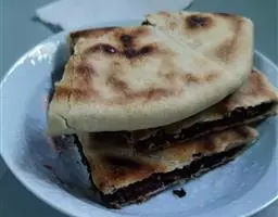 3.炒锅烧热,放入辣椒、花椒焙干,用擀面杖碾碎;
