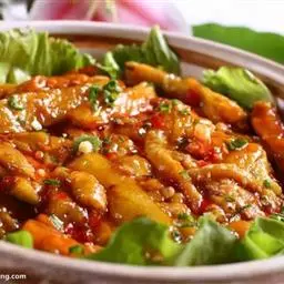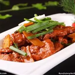 16.乘热淋在肉片上即可。