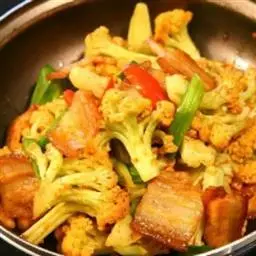 干锅花菜,是湘菜常见的一道菜,以花菜、秀珍菇、蘑菇、青红尖椒为主要食材,…
