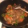 6.入鲜辣椒片翻炒均匀,加清水,盐,少量老抽煮沸。