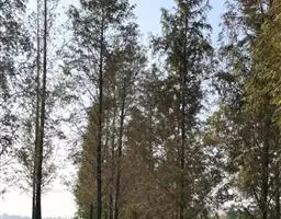 落羽杉 Rich.),杉科落羽杉属木本植物。树干尖削度大,基部通常膨大,具膝状呼吸根,树皮棕色,…