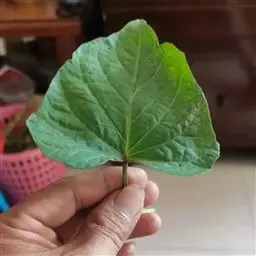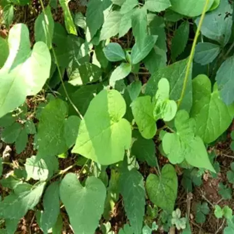 叶卵形,长10-20厘米,先端长锐尖或渐尖,基部心形,全缘或稍有角或分裂。