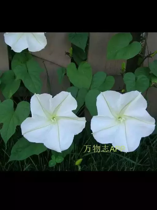 月光花的白色花朵形似满月,大而美丽,且在夜间开放,故得名。月光花生长很迅速,因此可作为引人注目的篱垣布景。