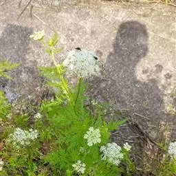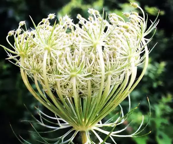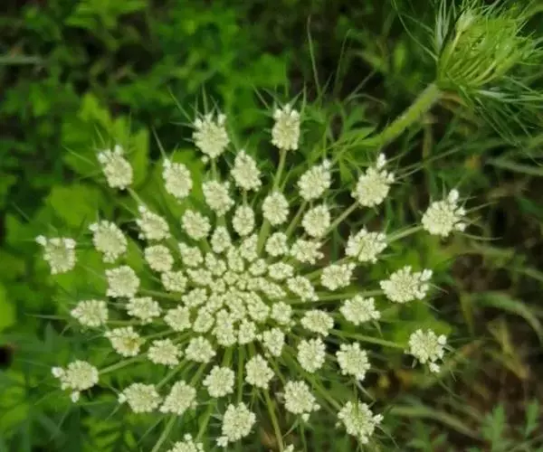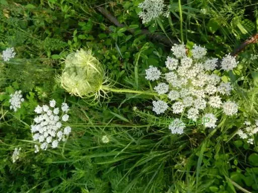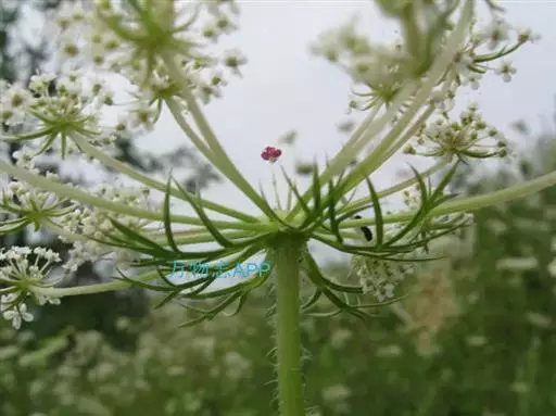 野胡萝卜(学名:Daucus carota L.)伞形目、伞形科、胡萝卜属。二年生草本,高15-120厘米。茎单生,全体有白色粗硬毛。基生叶薄膜质,长圆形,二至三回羽状全裂,末回裂片线形或披针形,顶端尖锐,有小尖头,光滑或有糙硬毛;叶柄长3-12厘米;茎生叶近无柄,有叶鞘,末回裂片小或细长。复伞形花序,花序梗长10-55厘米,有糙硬毛;总苞有多数苞片,呈叶状,羽状分裂,少有不裂的,裂片线形;伞辐多数,结果时外缘的伞辐向内弯曲;小总苞片5-7,线形,不分裂或2-3裂,边缘膜质,具纤毛;花通常白色,有时带淡红色;花柄不等长。果实圆卵形,棱上有白色刺毛。花期5-7月。
