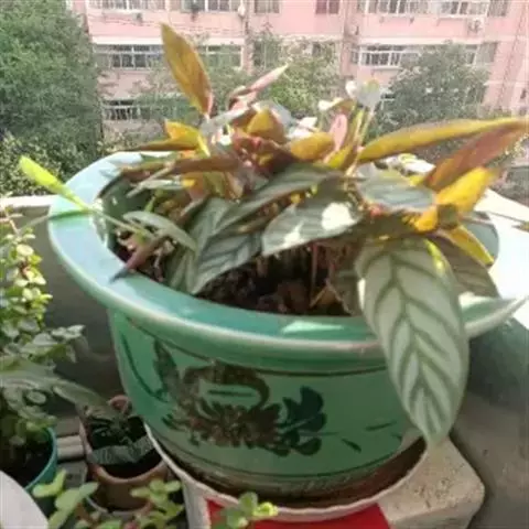 花叶竹芋:竹芋科,竹芋属匍匐状分枝草本植物,植株矮小,高可达40厘米,叶片长圆形、椭圆形至卵形,基…