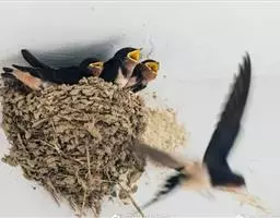 家燕:为燕科燕属的鸟类。喙短而宽扁,基部宽大,呈倒三角形,上喙近先端有一缺刻;口裂极深,嘴须不发达…