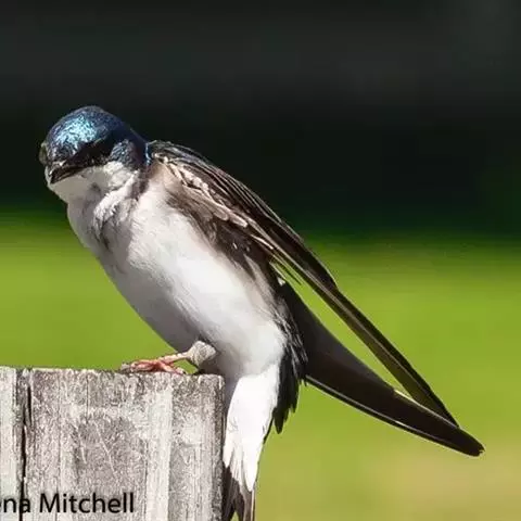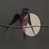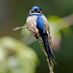 线尾燕,腹部接近纯白色,背部则为深紫色,头部的羽毛是栗色的。
