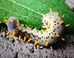 背鳍X一5;臀鳍Ⅲ一8;胸鳍15;腹鳍I一5;尾鳍17。体长椭圆形,侧扁。吻钝尖。上下颌牙细小,多行;上颌前端具2~4个犬牙,下颌外行具稀疏尖锐牙,犁骨及腭骨具绒毛状牙。体被中大栉鳞,颊部、鳃盖部均被细鳞。背鳍、臀鳍及尾鳍基部具细鳞。侧线上方鳞列斜向后背缘,下方鳞列与体轴平行。背鳍无缺刻。胸鳍后端伸达臀鳍起点。尾鳍内凹。体背部艳黄色,腹部粉红色。体侧具4条平行蓝色纵带,纵带边缘暗褐色。幼鱼背鳍鳍条下方具一黑斑,成鱼消失。各鳍黄色。