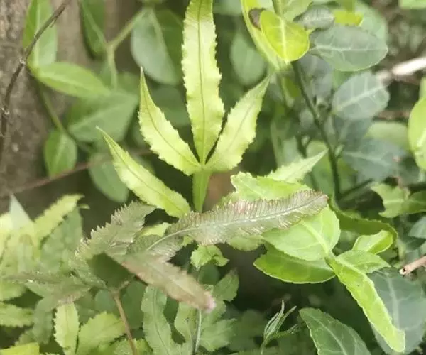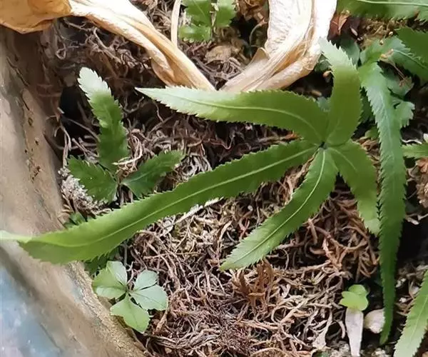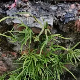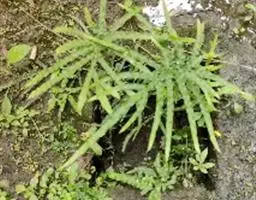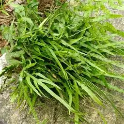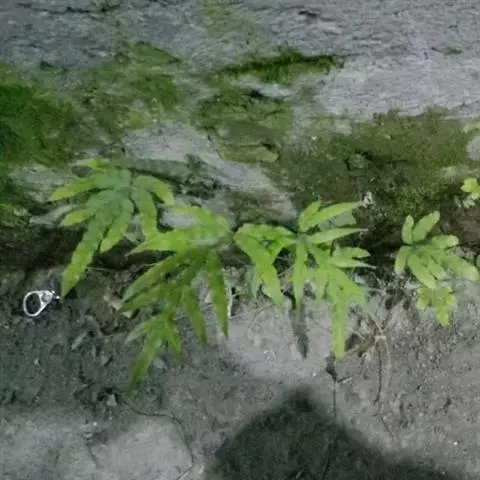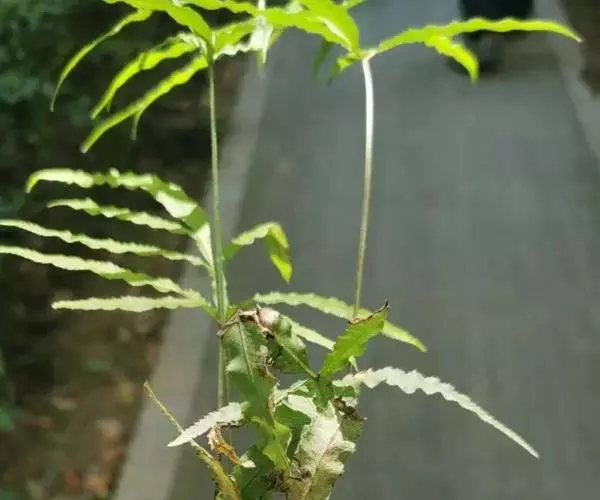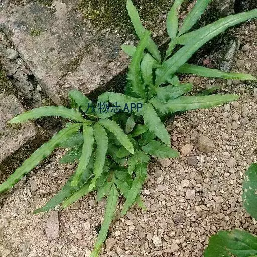 井栏边草(学名:Pteris multifida Poir.)是凤尾蕨科,凤尾蕨属陆中小型蕨类植物,植株高可达45厘米。根状茎短而直立,先端被黑褐色鳞片。叶多数,密而簇生,叶片卵状长圆形,一回羽状,羽片通常对生,无柄,线状披针形,先端渐尖,有时近羽状,能育叶有较长的柄,羽片狭线形,叶轴禾秆色,稍有光泽。