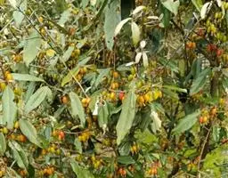 牛奶子,别名:剪子果、甜枣、麦粒子,拉丁文名:Elaeagnus umbellate Thunb.属于胡颓子科、胡颓子属落叶直立灌木,小枝甚开展,多分枝,幼枝密被银白色和少数黄褐色鳞片,有时全被深褐色或锈色鳞片,老枝鳞片脱落,灰黑色;芽银白色或褐色至锈色。叶纸质或膜质,椭圆形至卵状椭圆形或倒卵状披针形,成熟后全部或部分脱落,干燥后淡绿色或黑褐色,下面密被银白色和散生少数褐色鳞片,果实几球形或卵圆形,幼时绿色,被银白色或有时全被褐色鳞片,成熟时红色;果梗直立,花期4-5月,果期7-8月。 果实、叶、根具有治泻痢、消渴、喘咳、祛风、利湿、月经过多和风湿关节等药用价值;此外,还可作为提取香精、工业用油、人造纤维板、植物源农药等的原材料。