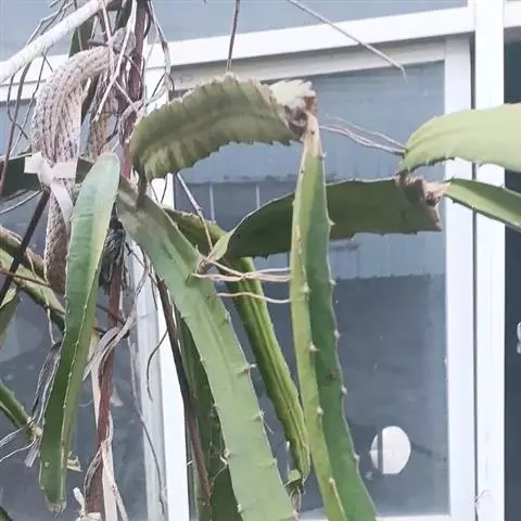 木麒麟(学名:Pereskia aculeata Mill.):基部主干灰褐色,表皮纵裂;分枝多数,圆柱状,具长的节间,绿色或带红褐色,无毛;小窠生叶腋,垫状,具灰色或淡褐色绒毛;刺针状至钻形,褐色,在攀援枝上常成对着生并下弯成钩状,较短。叶片卵形、宽椭圆形至椭圆状披针形,先端急尖至短渐尖,边缘全缘,基部楔形至圆形,稍肉质,无毛,上面绿色,下面绿色至紫色;侧脉每侧4-7条,在上面稍下陷或平坦,于下面略突起;叶柄无毛。花于分枝上部组成总状或圆锥状花序,辐状;花托外面散生披针形至线状披针形叶质鳞片及腋生小窠,小窠具黄褐色至淡灰色绒毛和细刺。