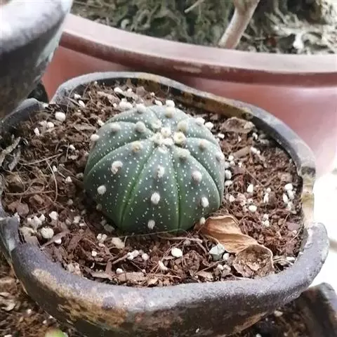 岩牡丹是仙人掌科、岩牡丹属多年生草本多浆植物。植株球形或呈扁平的莲座状,灰绿色,球体表面被白粉。…