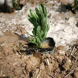 春播于翌年3~4月移栽,秋播于翌年9~10月移栽。移栽时应选用根茎直径在1.5厘米以上健壮幼苗(不够粗的继续留在苗床内培育),剪去侧根和主根的细长部分。然后在整好的地里按行株距70厘米×50厘米开约30厘米深的穴,施入底肥,每穴栽苗1株。春栽盖土宜浅,也可使幼苗露出土面;秋栽盖土宜深,应高出芽生长点5~7厘米,防止冬冻。覆土后,穴内的土面要低于畦面9~12厘米,以利培土和追肥管理。第一年因苗小,株行距较大,也可间种些蔬菜。