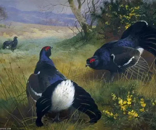 松鸡(学名:Tetrao urogallus):是走禽,共有12个亚种。雄鸟体长87-125厘米,体重3600-5050克;雌鸟体长74-90厘米,体重为1350-2000克。体结实,喙短,呈圆锥形,适于啄食植物种子;翼短圆,不善飞;脚强健,具锐爪,善于行走和掘地寻食;鼻孔和脚均有被羽,以适应严寒。雄性羽色鲜艳,具大的肉冠和美丽的羽毛;跗蹠后缘具距。