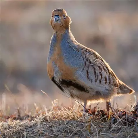 褐胸山鹧鸪:雄鸟体长22厘米,体重310克;雌鸟体长23厘米,体重220-275克。前额皮黄白色,…