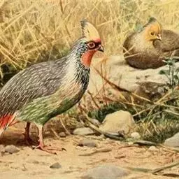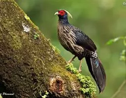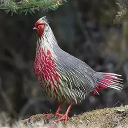 血雉雉科血雉属鸟类,别名血鸡、松花鸡,血雉的雄鸟大覆羽、尾下覆羽、尾上覆羽、脚、头侧、腊膜为红色,…