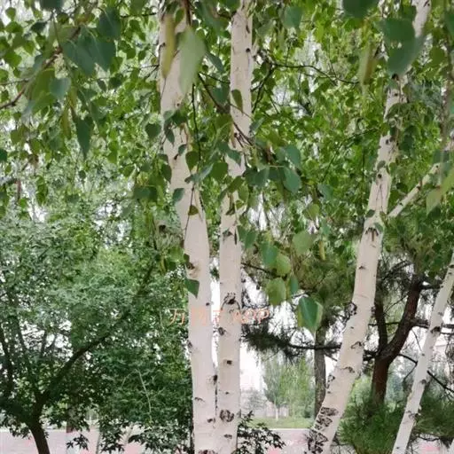 白桦(学名:Betula platyphylla Suk.):落叶乔木,树干可达25米高,50厘米粗。有白色光滑象纸一样的树皮,可分层剥下来,用铅笔还可以在剥下薄薄的树皮上面写字。白桦的叶为单叶互生,叶边缘有锯齿,花为单性花,雌雄同株,雄花序柔软下垂,春天树上的叶还没长出来的时候就开花了。白桦树的果实扁平且很小,叫翅果,很容易被风刮起来传到远处。