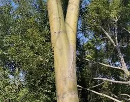 白桦树是乔木,高可达27米;树皮灰白色,成层剥裂;枝条暗灰色或暗褐色,无毛,具或疏或密 的树脂腺体或无;小枝暗灰色或褐色,无毛亦无树脂腺体,有时疏被毛和疏生树脂腺体。