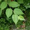 叶厚纸质,三角状卵形,三角状菱形,三角形,少有菱状卵形和宽卵形,长3-9厘米,宽2- 7.5厘米,顶端锐尖、渐尖至尾状渐尖,基部截形,宽楔形或楔形,有时微心形或近圆形,边缘具重锯齿,有时具缺刻状重锯齿或单齿,上面于幼时疏被毛和腺点,成熟后无毛无腺点, 下面无毛,密生腺点,侧脉5-7(-8)对;叶柄细瘦,长1-2.5厘米,无毛。